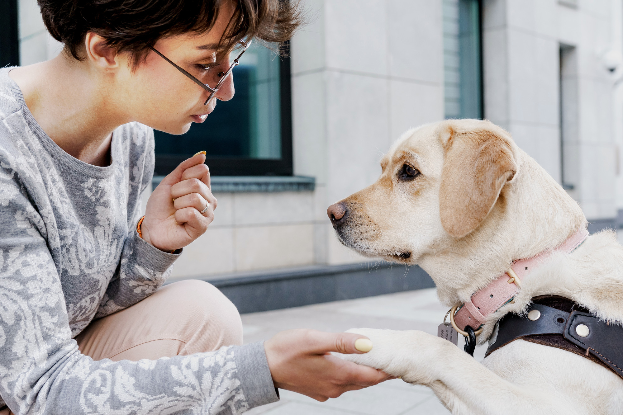 Человек и собака-поводырь